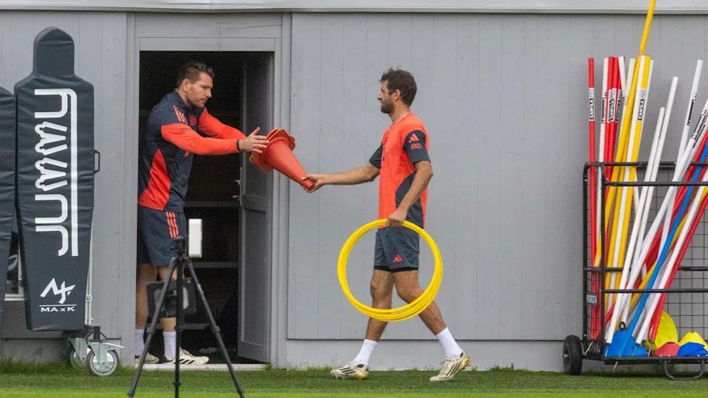 训练结束后,穆勒不仅收拾了标志桶、人墙和训练环,还贴心地帮帕夫洛维奇捡起毛衣,随后返回更衣室。期间,新任康复主管本雅明-索默(8月从法兰克福加盟)也短暂观摩了训练。穆勒在场上状态极佳,与帕夫洛维奇交流频繁,对年轻球员而言,这次训练更具意义——毕竟穆勒一直是他的导师和重要依靠。